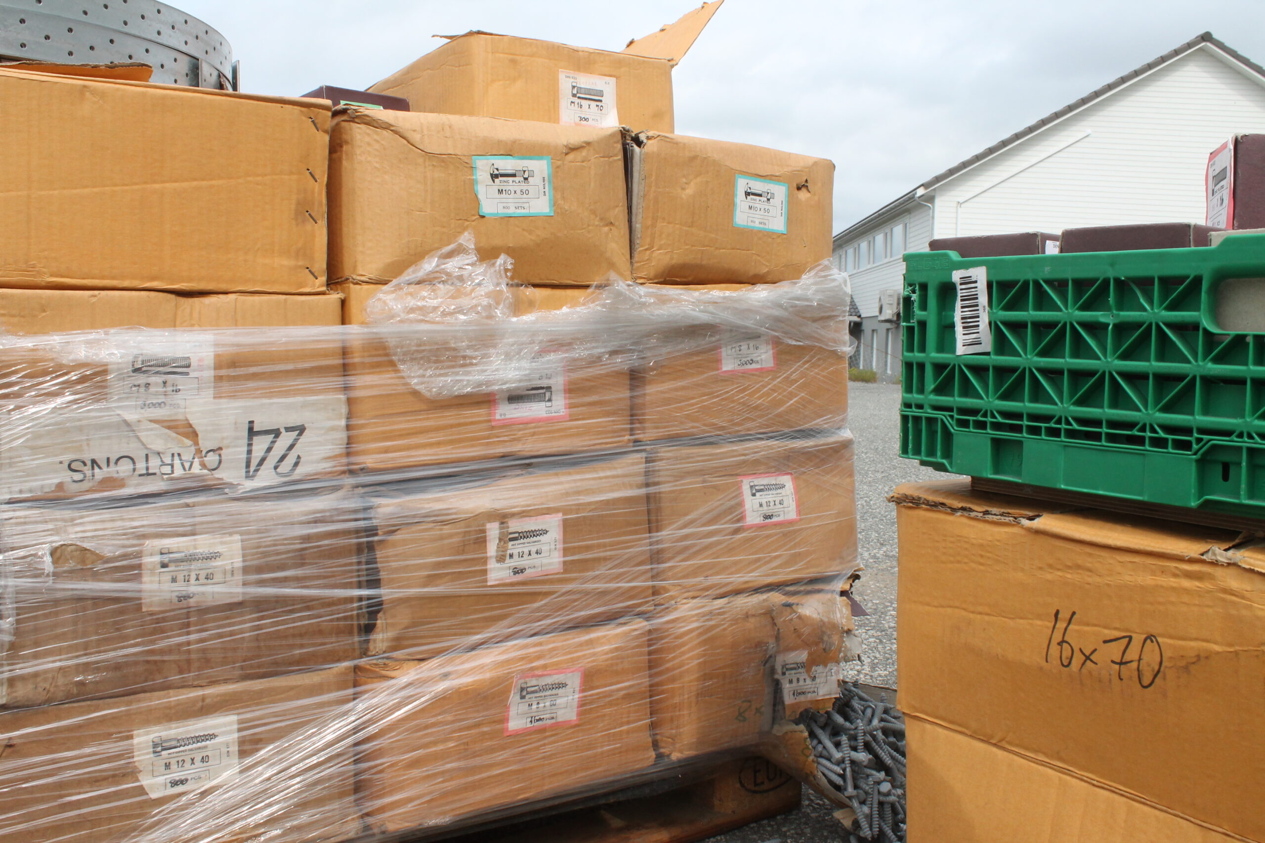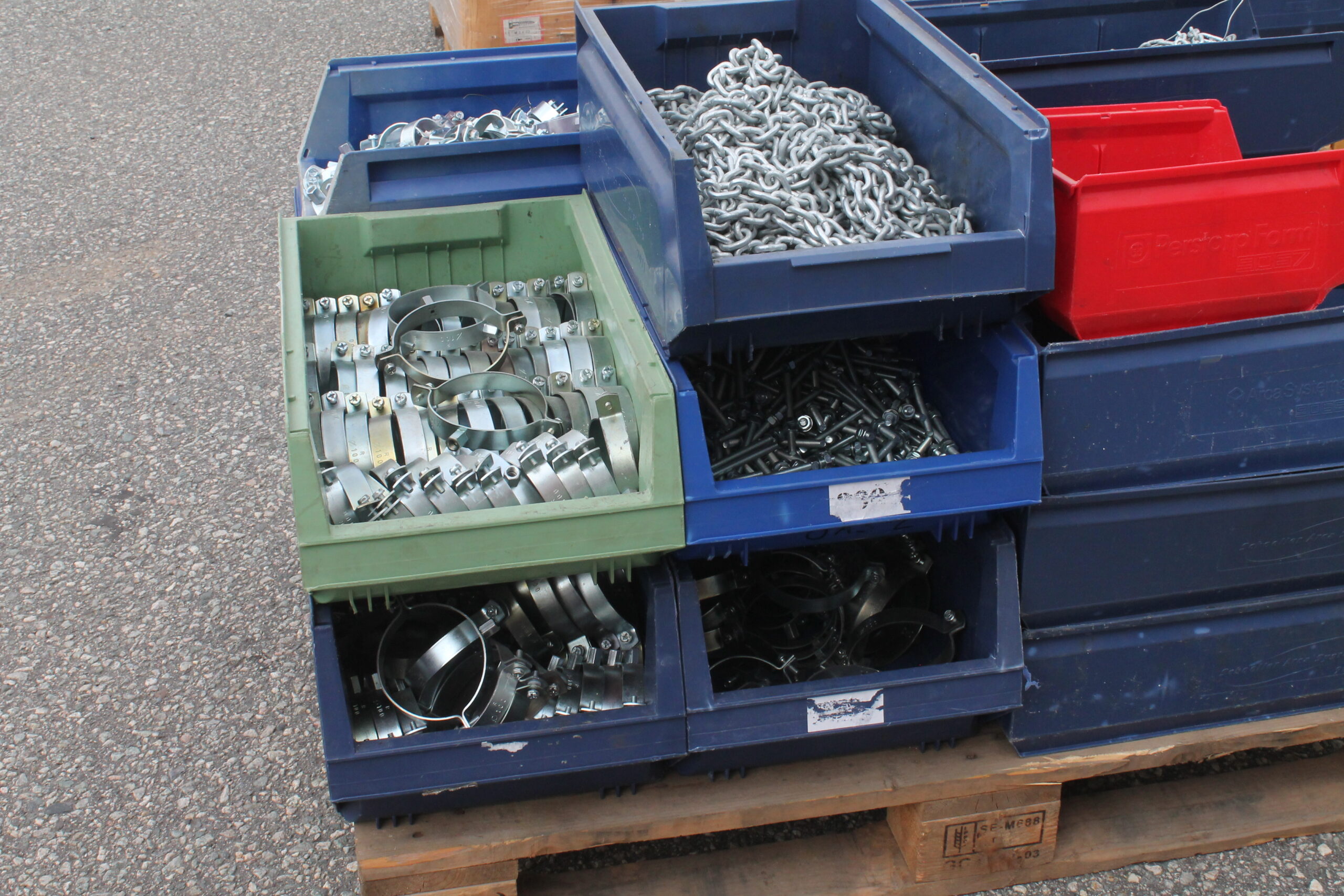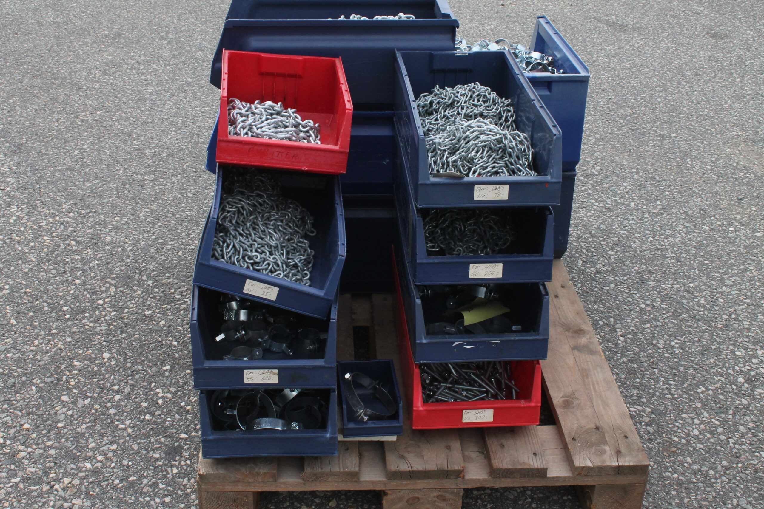 NB. kjetting og rørklammer i plastkasetter blir om-emballert. Plastkassetter følger ikke med.