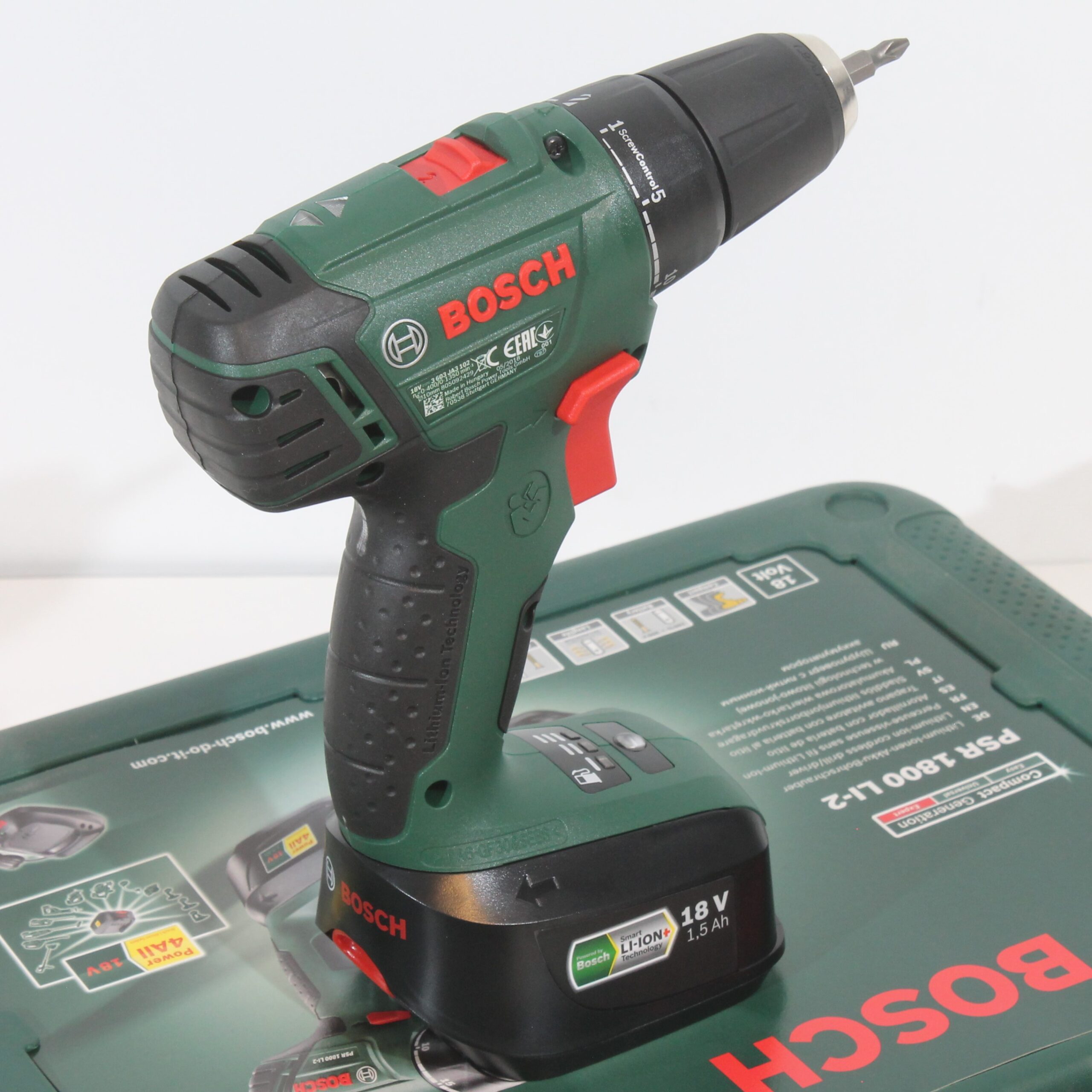 Bosch PSR 1800 LI-2 drill med 3 batterier