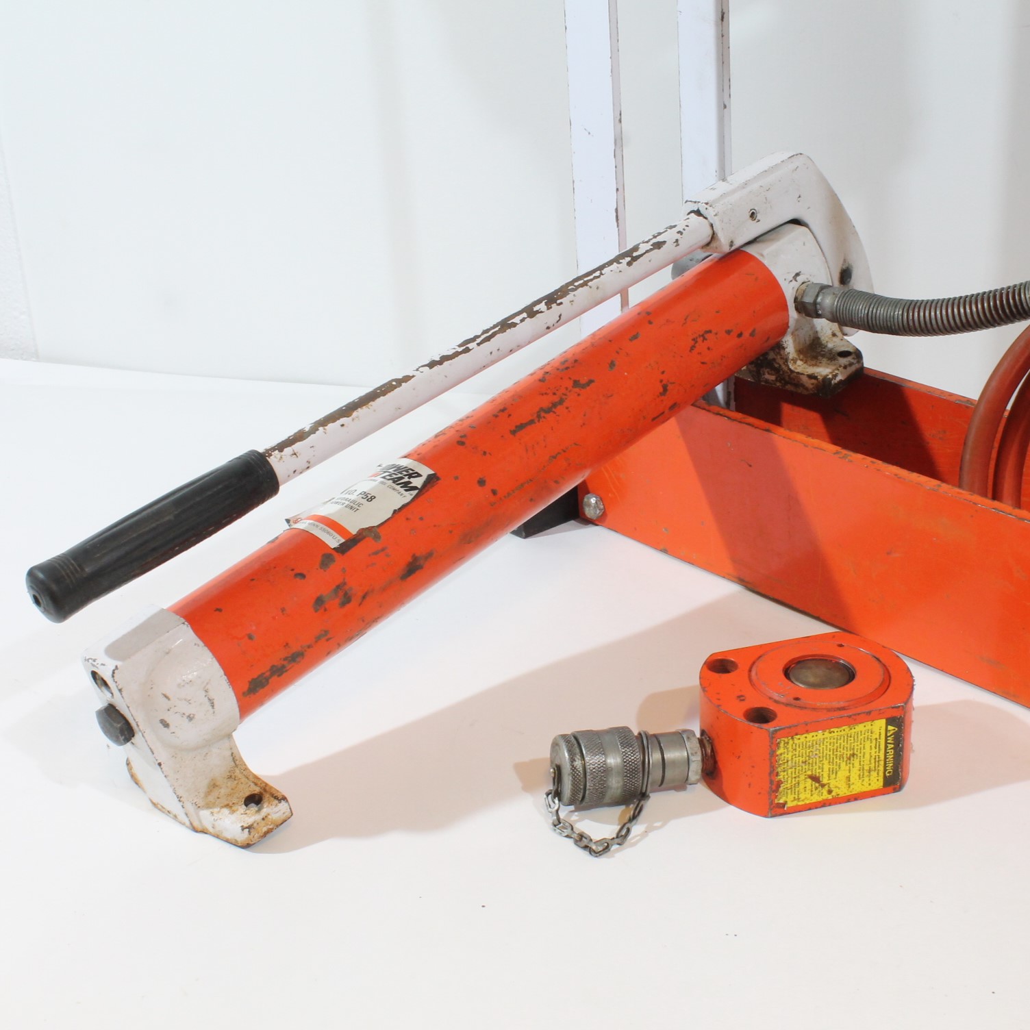 Power Team verkstedpresse, håndpumpe og lavprofil-jekk